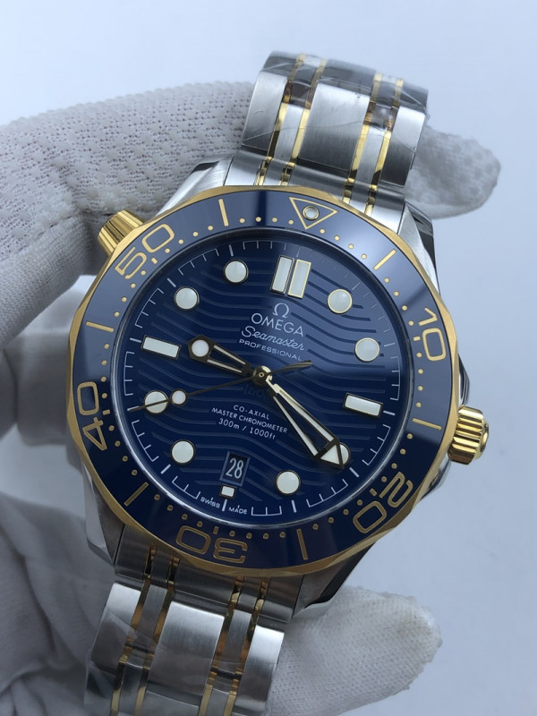(국내발송1점 ))NO.1037/VS공장 오메가 다이버 300 옐로우골드 콤비 블루다이얼 블루 브슬 러버밴드 > 쇼핑