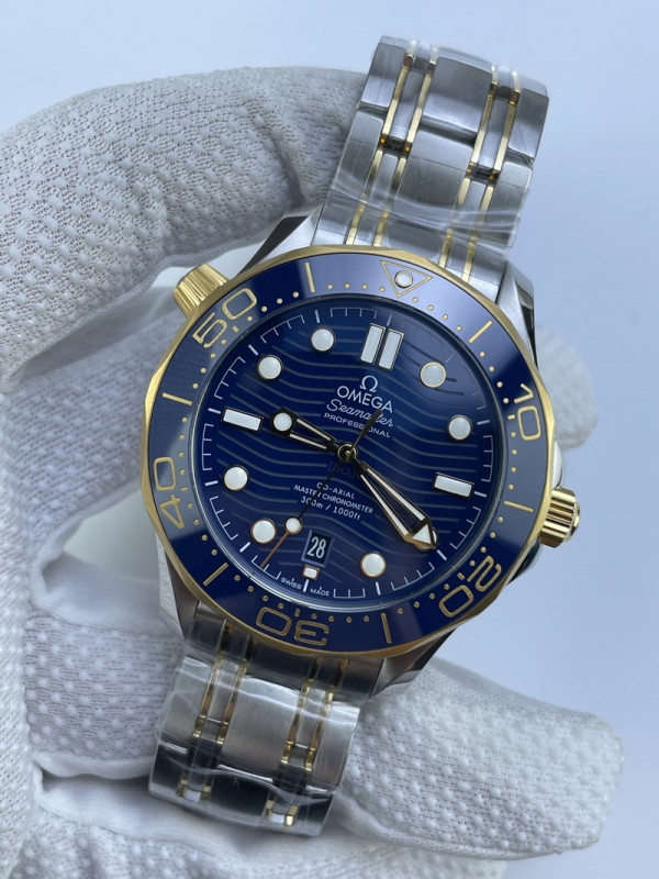 (준비완료/특급배송)NO.3294/VS공장 오메가 다이버 300 옐로우골드 콤비 블루다이얼 블루 브슬